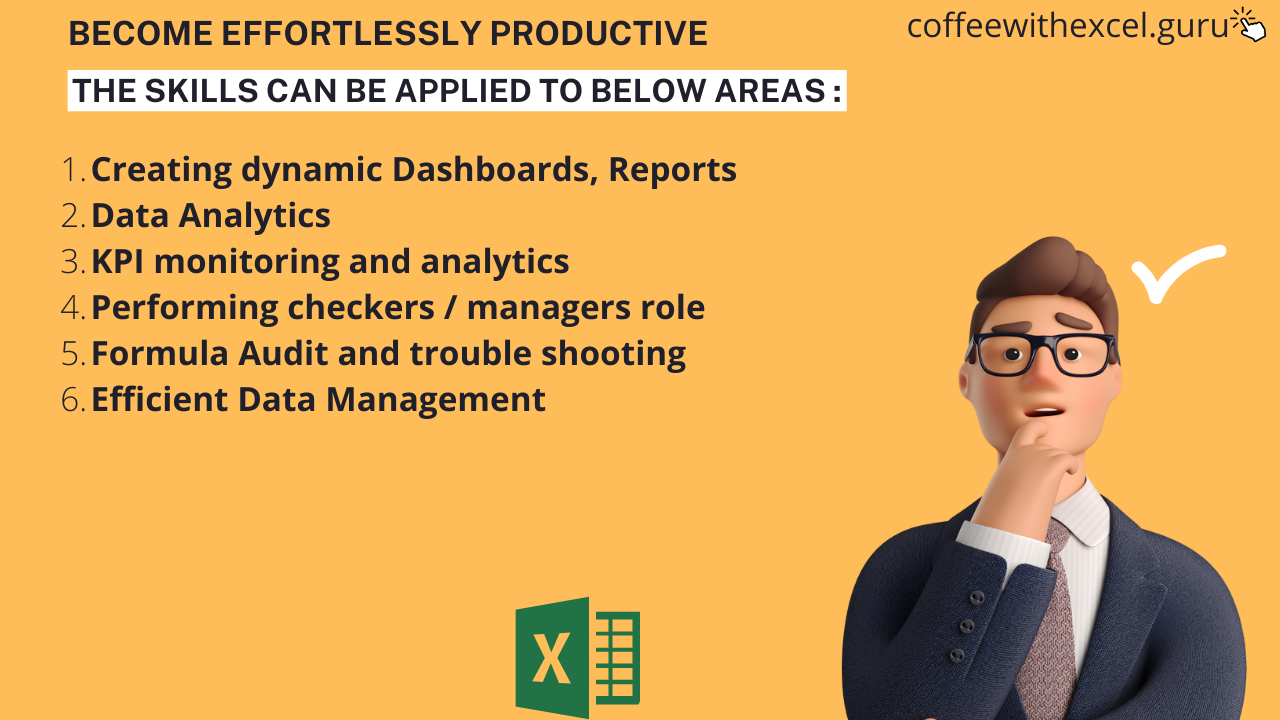 The course is perfect for all levels of Excel users regardless of their specific expertise. It is highly recommended for Freshers, data/business analysts, Mid or Senior Managers, or any other professionals who want to create better reports and deliver their analysis in a more effective manner.