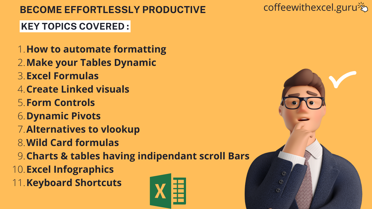 This not designed as an intro to Excel. This would showcase specific tools and techniques. This is not a sequential learnig course.